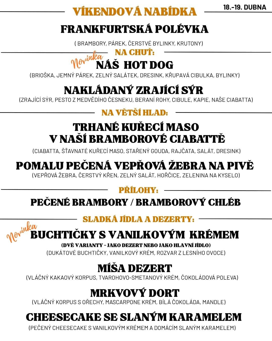 Nejaktuálnější akce, novinky, menu i změny v otvírací době sledujte na naší facebookové stránce. Těšíme se na vaší návštěvu!
